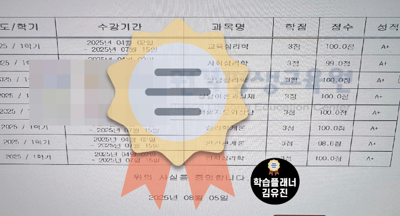 막학기만 남은 상태입니다! 25년도 1학기 성적을 보내주셨는데,